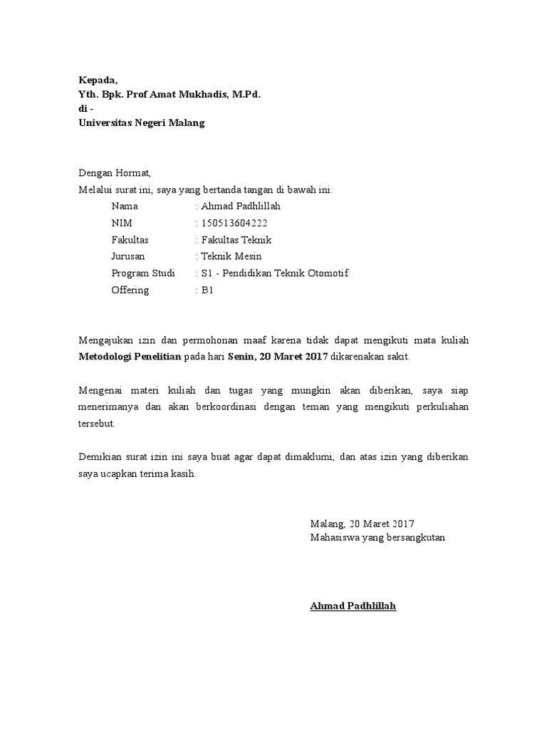 contoh surat lamaran kerja cleaning service yang baik dan. surat beranak dulu tulis pakai tangan ada tulis pukul sumber : contoh surat izin sakit tidak masuk sekolah sakit memang sebuah kendala yang tak bisa diatur oleh manusia. contoh surat izin tidak masuk kuliah karena sakit dan kepentingan keluarga contoh surat izin tidak masuk kuliah sebenarnya tidak jauh berbeda dengan surat izin lainnya sebagaimana kemarin telah saya sampaikan tentang contoh surat izin tidak masuk sekolah kali ini saya ingin berbagi. Bapak/ ibu dosen kelas a ilmu pemerintahan.